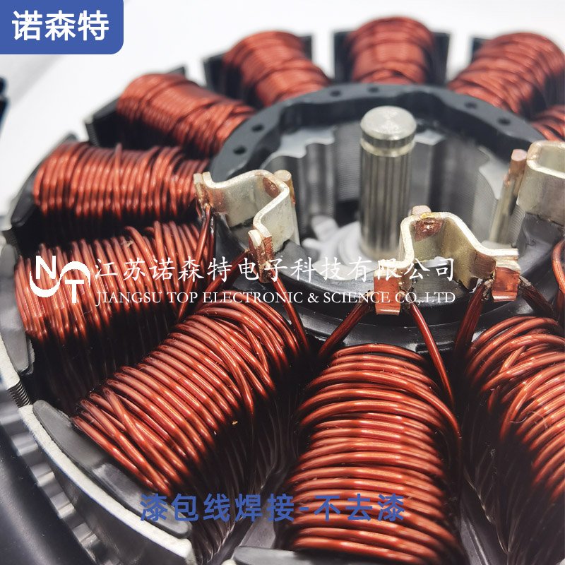 漆包線銅端子焊接后,漆包線焊接部分漆皮去的干凈,且導通良好。設備性能穩(wěn)定,操作簡單,半自動化生產(chǎn)效率高。