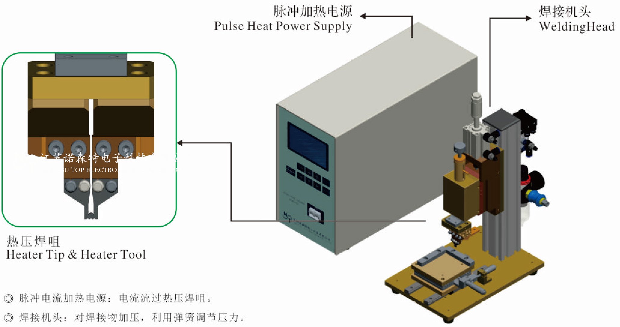 1、脈沖電流加熱裝置:電流流過(guò)熱壓焊咀。
